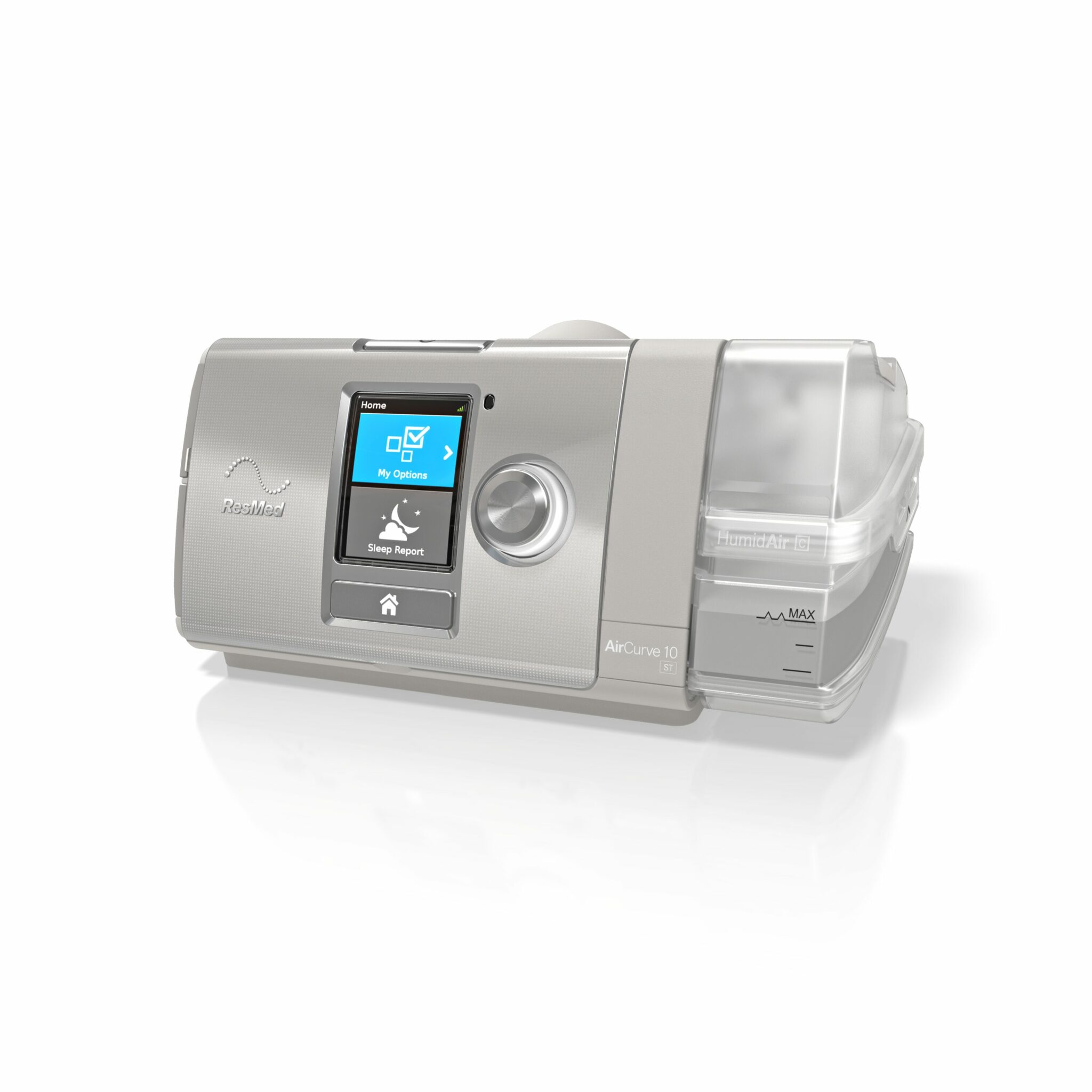 It features iVAPS (intelligent Volume-Assured Pressure Support), ResMed’s proprietary mode that automatically adapts to each user’s changing needs, and an intelligent Backup Rate (iBR) that maximizes their opportunity to breathe spontaneously. The AirCurve 10 ST-A includes both fixed and adjustable alarms for added safety and built-in cellular connectivity to AirView for remote monitoring and the ultimate in patient care.
